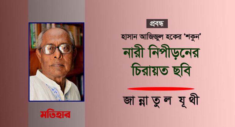 হাসান আজিজুল হকের ‘শকুন’ গল্পটির প্রেক্ষাপট ঘুণে ধরা সামজের শোষণের চিত্র। যে সমাজে নারীরা নিরাপদ নয়। যেই সমাজে দরিদ্ররা প্রতিনিয়ত আরও দারিদ্র্যের শিকার। পুঁজিপতি সমাজের কষাঘাতে নিম্নবর্গের জীবন দুর্বিষহ। শকুন যেমন পচা আবর্জনা ঠুকরে খায়, রোগাক্রান্ত, মৃত প্রাণী নিমেষেই সাবাড় করে দেয়। সমাজের মোড়ল, মাতবর, রাঘববোয়ালেরা তেমনই হতদরিদ্র মানুষের বুকে পা দিয়ে তার সর্বস্ব শুষে নেয়। এই জুলুম-অত্যাচার-নিপীড়নের চিত্রের এক অনবদ্য রূপ ফুটে উঠেছে ‘শকুন’ গল্পে।